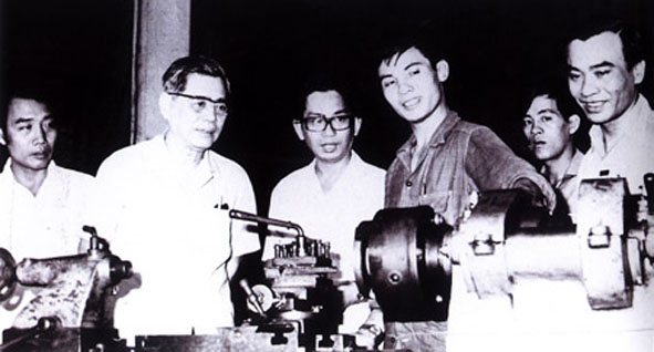 Đồng chí Nguyễn Văn Linh thăm Xí nghiệp Liên hợp máy công cụ ở TP. Hồ Chí Minh năm 1984. Ảnh: T.L