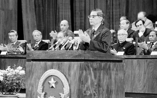 Tổng Bí thư Nguyễn Văn Linh đọc Diễn văn bế mạc Đại hội Đảng lần thứ VI, ngày 18/12/1986