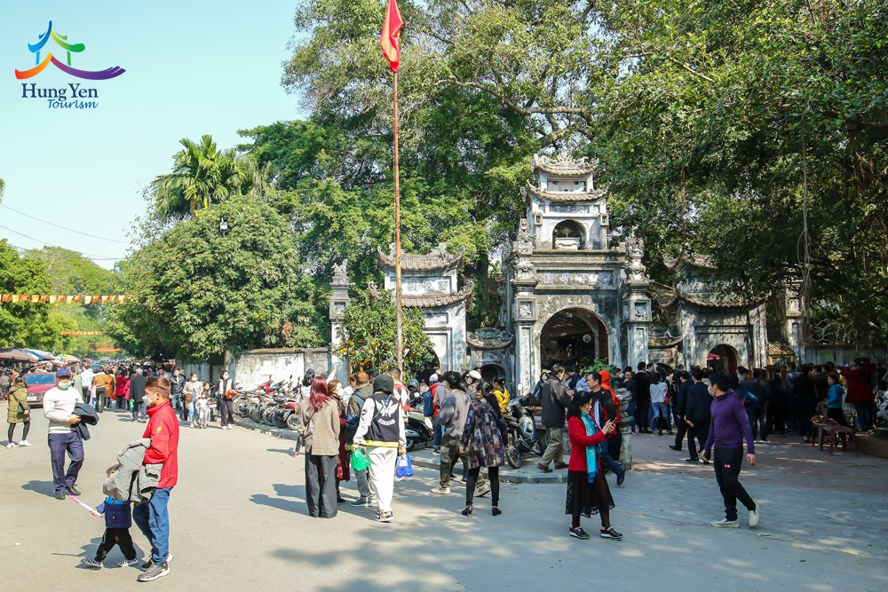 Du khách chiêm bái và dự hội tại đền Phù Ủng (xã Phạm Ngũ Lão, tỉnh Hưng Yên) nơi thờ tướng quân Phạm Ngũ Lão.