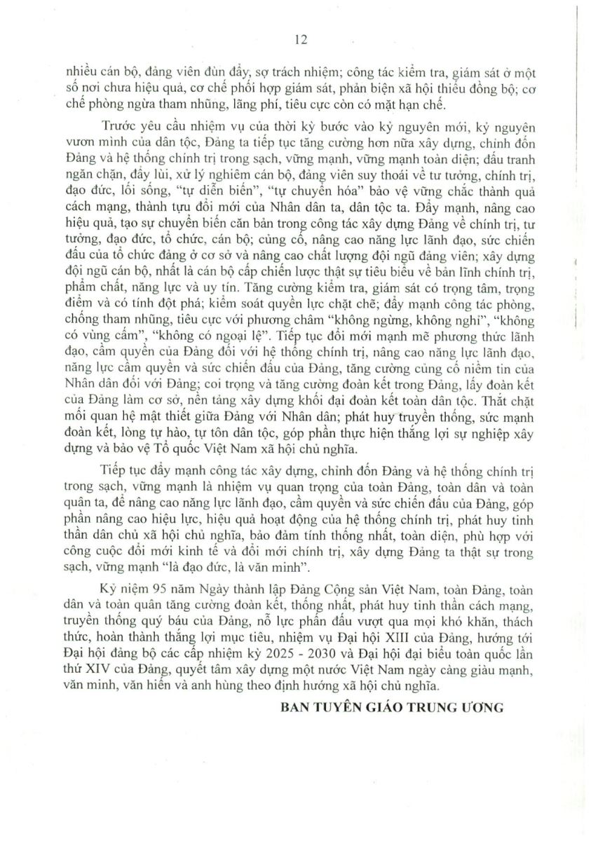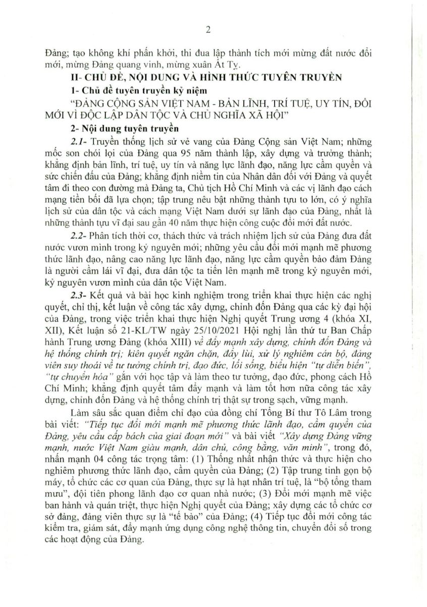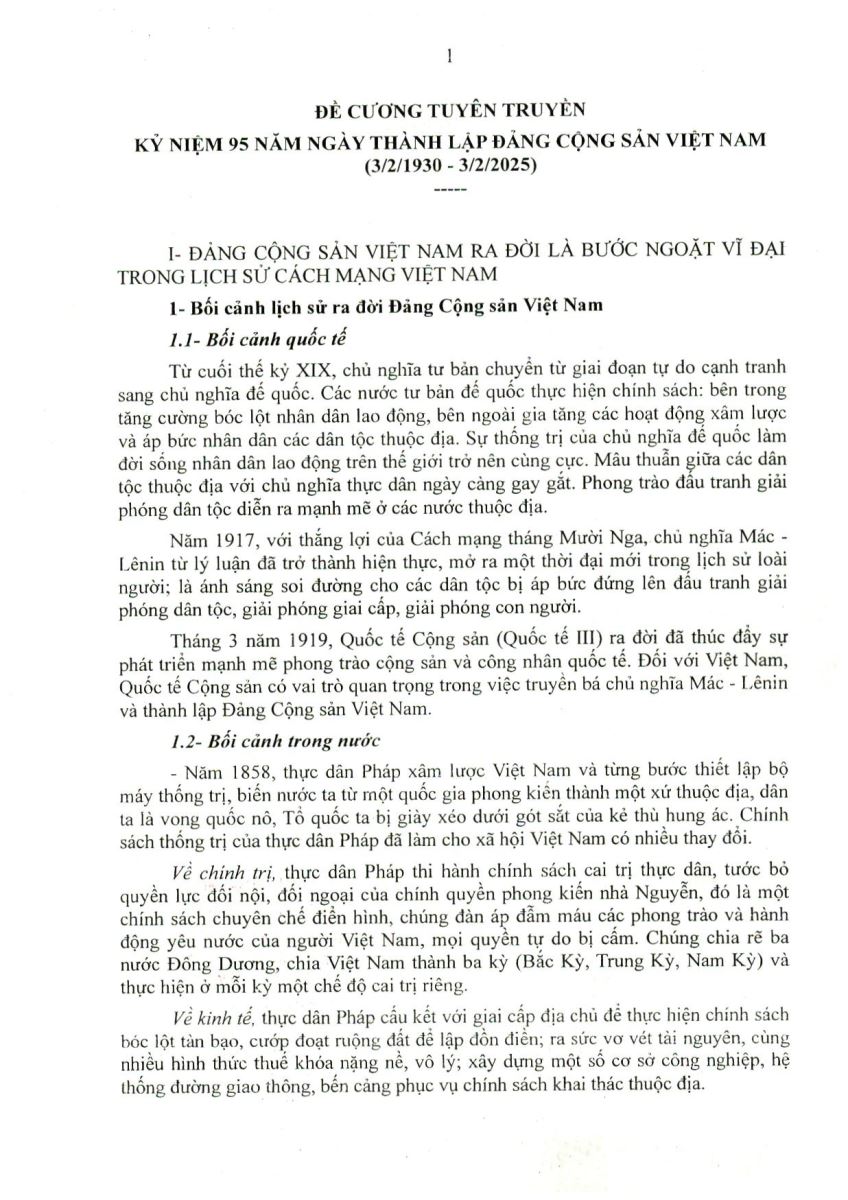 Thực hiện Công văn số 1332/SVHTTDL-QLVHGĐ ngày 17/12/2024 của Sở Văn hóa, Thể thao và Du lịch về việc tuyên truyền kỷ niệm 95 năm Ngày thành lập Đảng Cộng sản Việt Nam (03/02/1930 - 03/02/2025), Trung tâm TTXTDL xin giới thiệu đề cương tuyên truyền của Ban Tuyên giáo Trung ương và Kế hoạch số 99-KH/BTGTU ngày 12/12/2024 của Ban Tuyên giáo Tỉnh ủy: