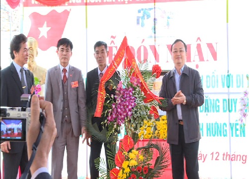 Tại buổi lễ, Bí thư Tỉnh ủy Đỗ Tiến Sỹ đã tặng hoa chúc mừng thôn Cự Đình và dòng họ Đặng, thôn Cự Đình.