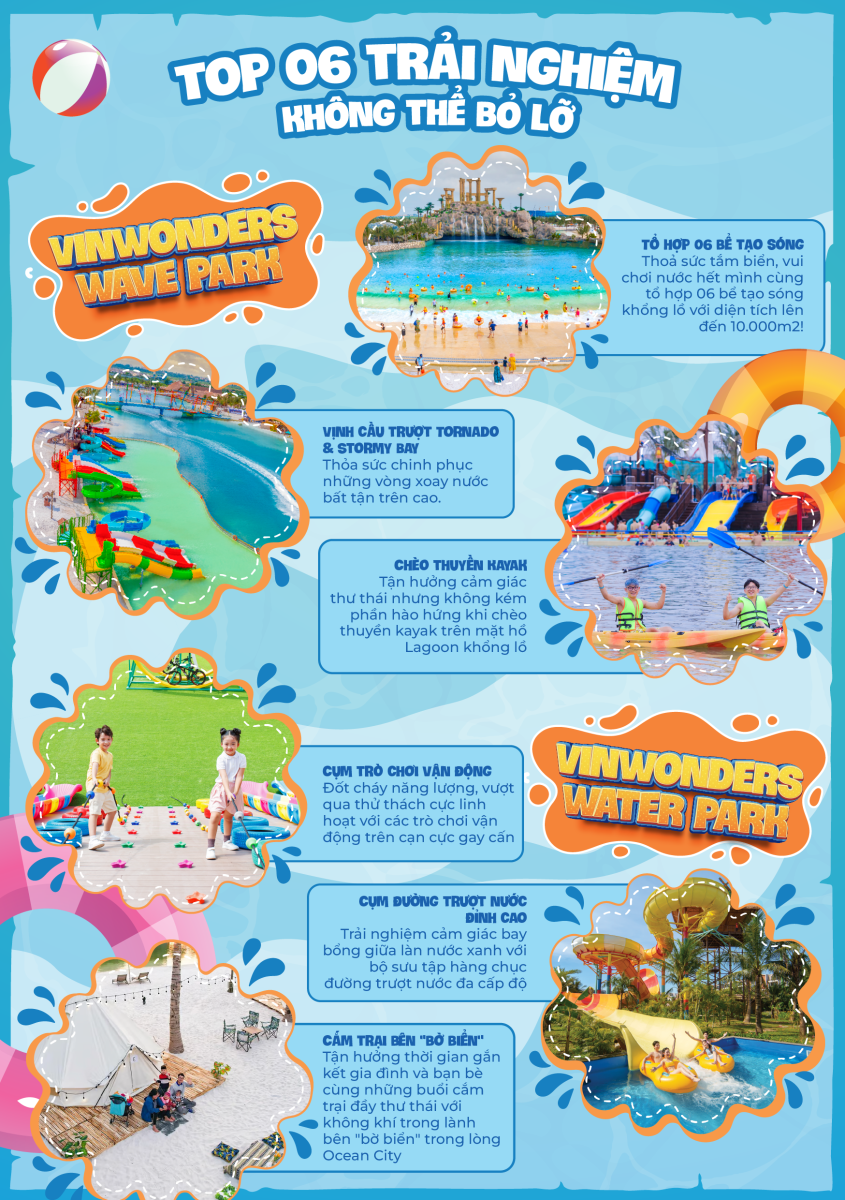 Chương trình nhằm khuyến khích các gia đình, cá nhân và du khách tham quan và khám phá các tiện ích tuyệt vời tại VinWonders Wave Park & Water Park, nơi nổi tiếng với các trò chơi giải trí đa dạng và các hoạt động hấp dẫn cho mọi lứa tuổi.