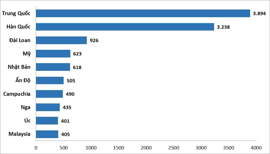 Về quy mô thị trường, Trung Quốc và Hàn Quốc tiếp tục là hai thị trường gửi khách lớn nhất của du lịch Việt Nam, đóng góp gần 1/2 tổng số khách quốc tế đến Việt Nam. Trong đó, Trung Quốc xếp ở vị trí thứ nhất, đạt 3,9 triệu lượt (chiếm 25,2%); Hàn Quốc ở vị trí thứ hai, đạt 3,2 triệu lượt (chiếm 21%).