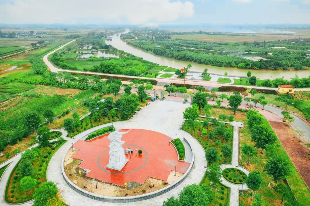 Ngay cạnh đó là công trình độc đáo thể hiện thần thái uy phong của Đức thánh Trần Hưng Đạo, tượng cao 13,2m chất liệu đá xanh nguyên khối.